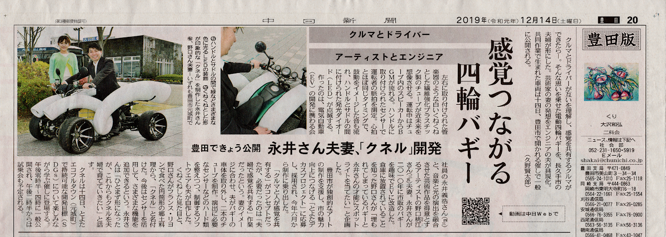 2019年 12 / 15 (日)中日新聞にSENSORIAL DRIVE ワークショップに関する記事が掲載されました。